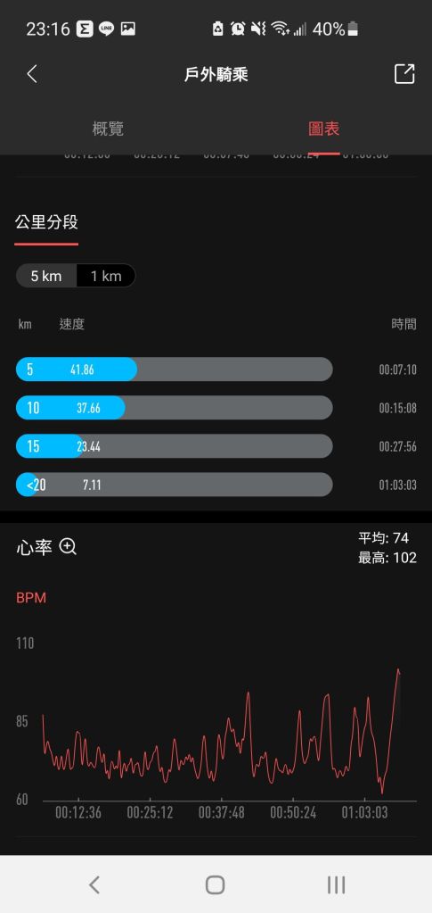 運動時使用GPS連線後還會繪製整趟運動下來的軌跡與詳細資訊供參考